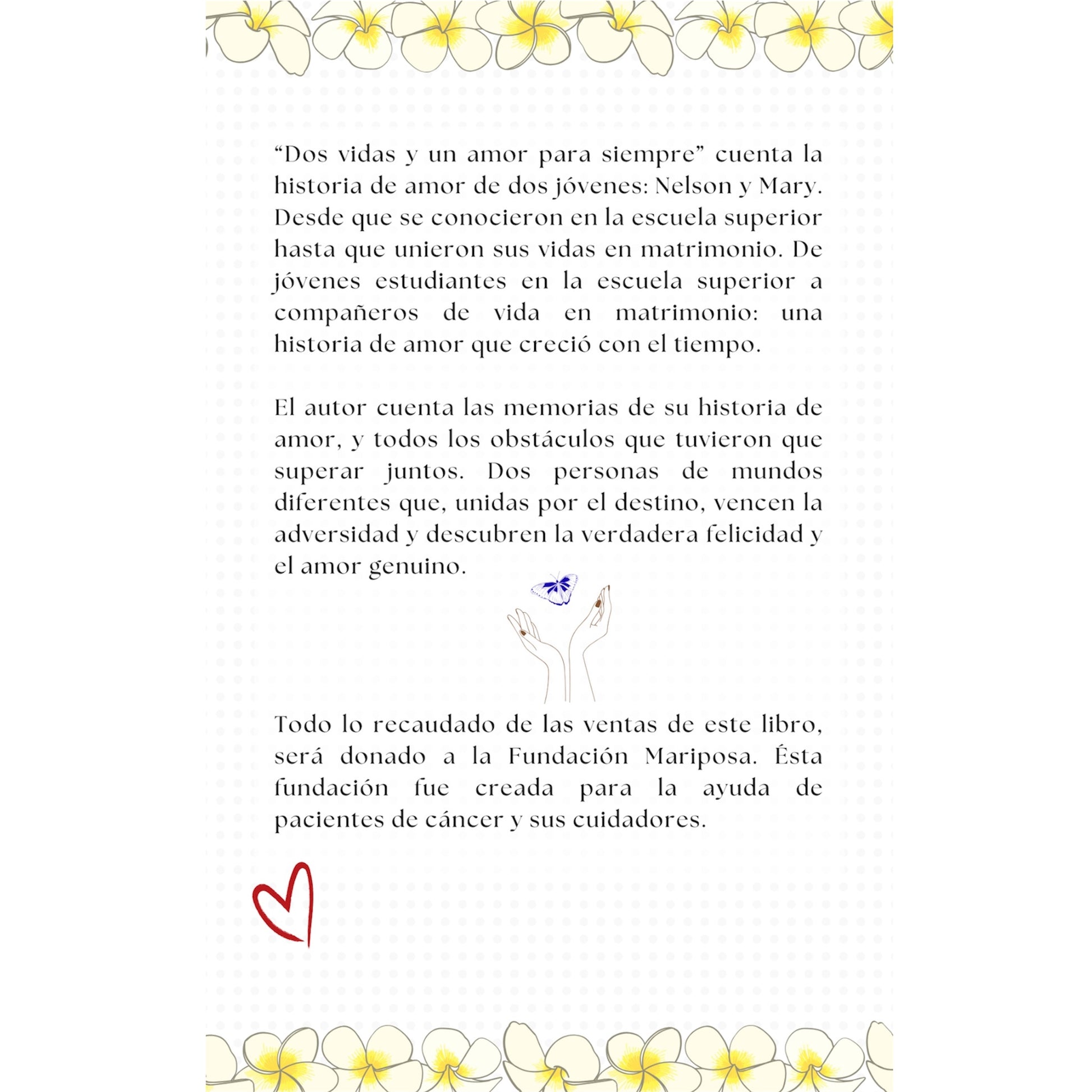 Dos vidas y un amor para siempre cuenta la historia de amor de dos jóvenes: Nelson y Mary. De jóvenes estudiantes en la escuela superior a compañeros de vida en matrimonio: una historia de amor que creció con el tiempo.